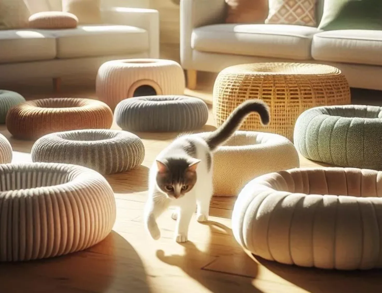 Кошенятам не варто купувати ліжечко із дрібними деталями — мотузками або намистинами, які потенційно небезпечні через ризик проковтнути їх.